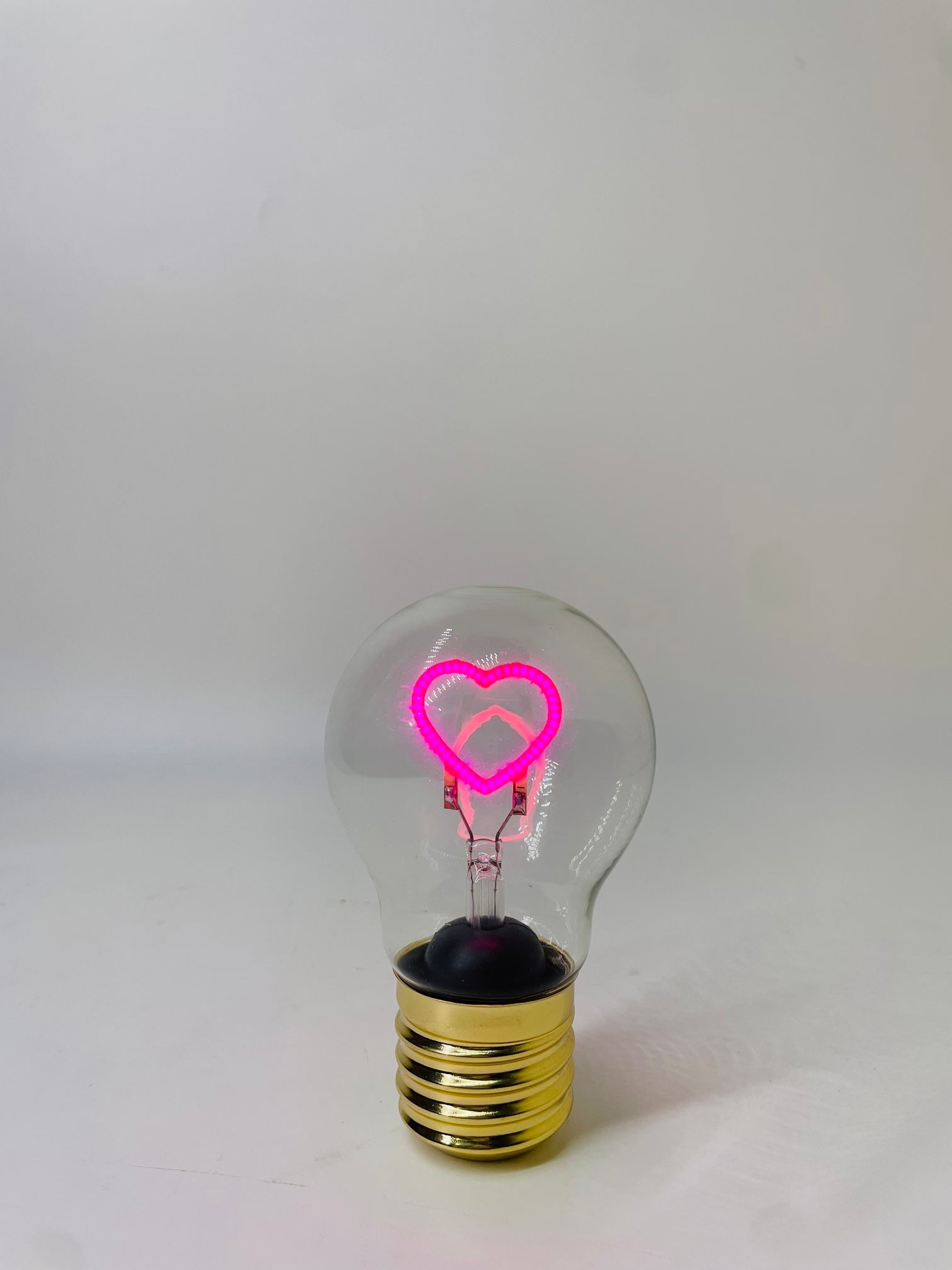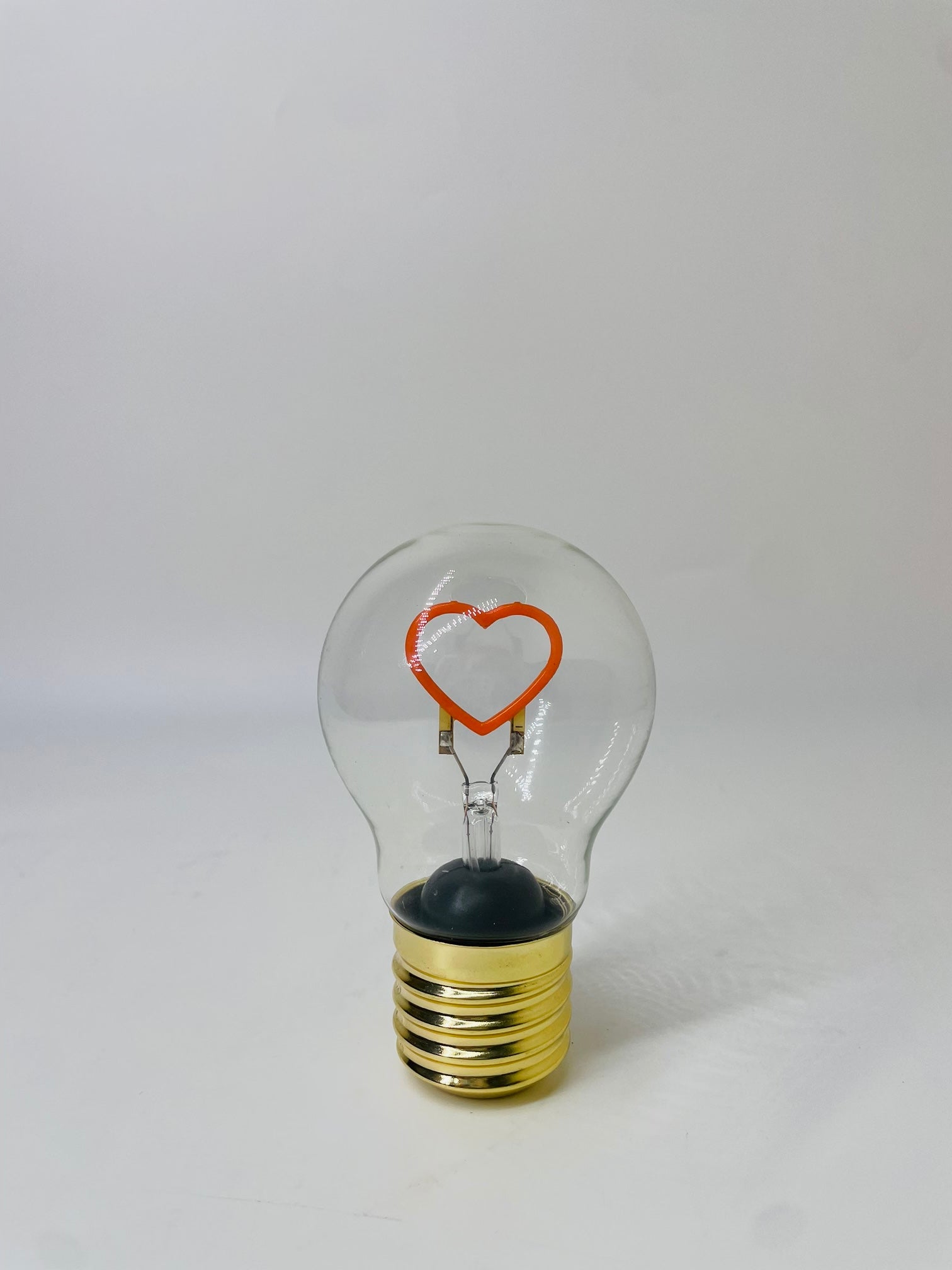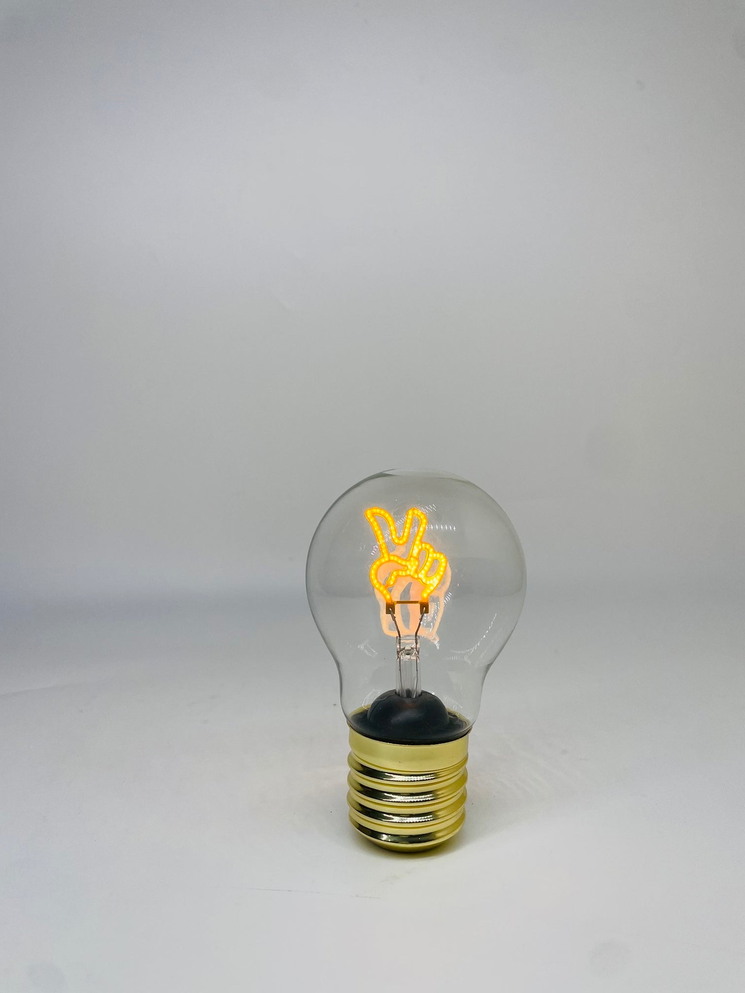 La bombilla recargable tiene un filamento rosa en su interior (el corazón), mientras que el símbolo de la paz tiene un filamento amarillo cálido dentro de una bombilla transparente. Alimentado por una batería recargable USB (cable incluido), proporciona 4 horas de luz después de aproximadamente 90 minutos de tiempo de carga.