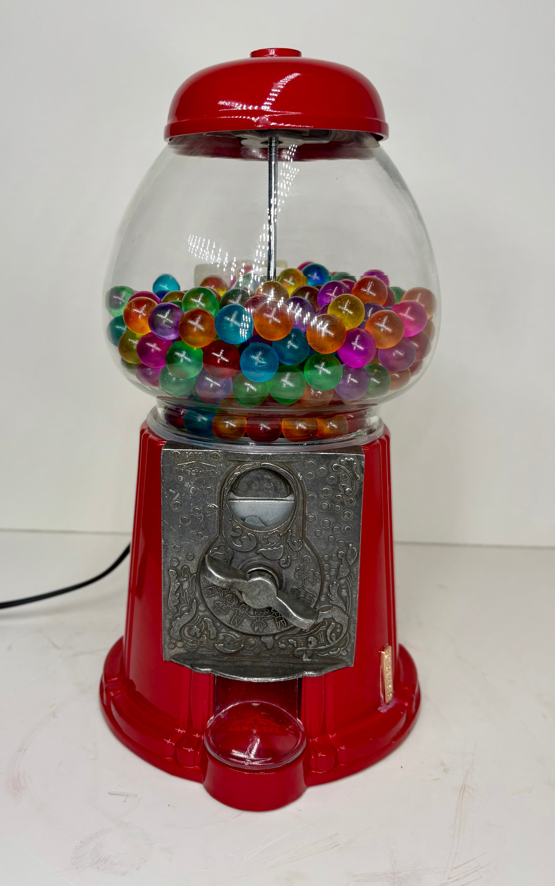 Las primeras máquinas dispensadoras fueron creadas alrededor del año 200 a.c cuándo el matemático Heron inventó un dispositivo que aceptaba monedas de bronce a cambio de agua bendita en los templos de Alejandrina en Egipto. Esta magnífica pieza es totalmente funcional en la cuál necesitas modernas para poder retirar tus chocolates o lo que desees llenar tu pieza. ¿Cool no crees? Pues es lámpara, máquina y alcancia en una misma pieza.