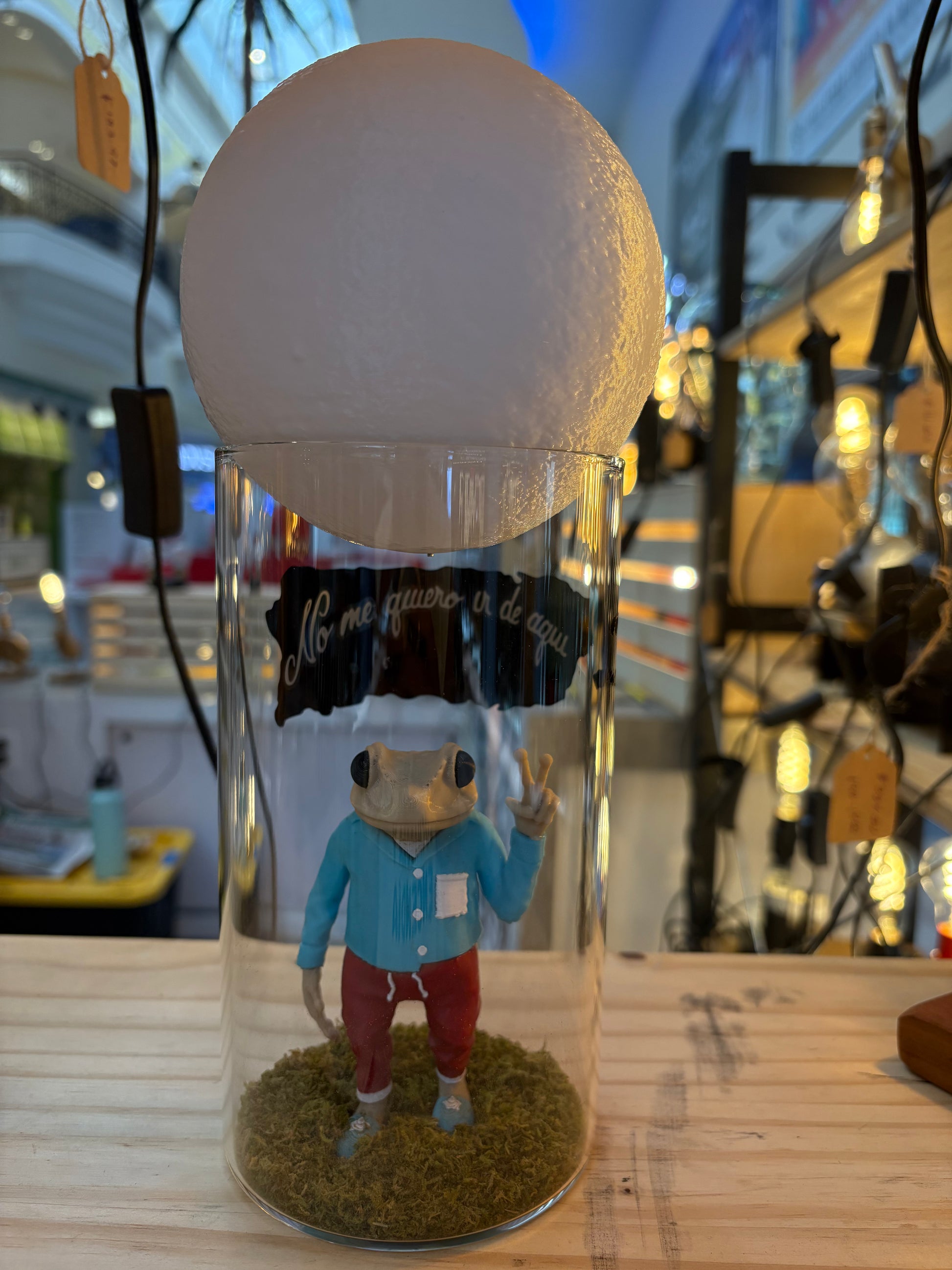Inspirada en el icónico sapo concho que se robó el corazón de Puerto Rico durante la residencia de Bad Bunny, esta pieza combina luz, humor y nostalgia boricua.